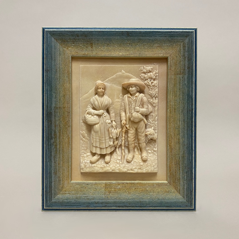 Il s’agit d’une représentation d’un traditionnel couple de paysans auvergnats, selon C.F. Becker dont la signature apparait en bas à gauche du tableau.
