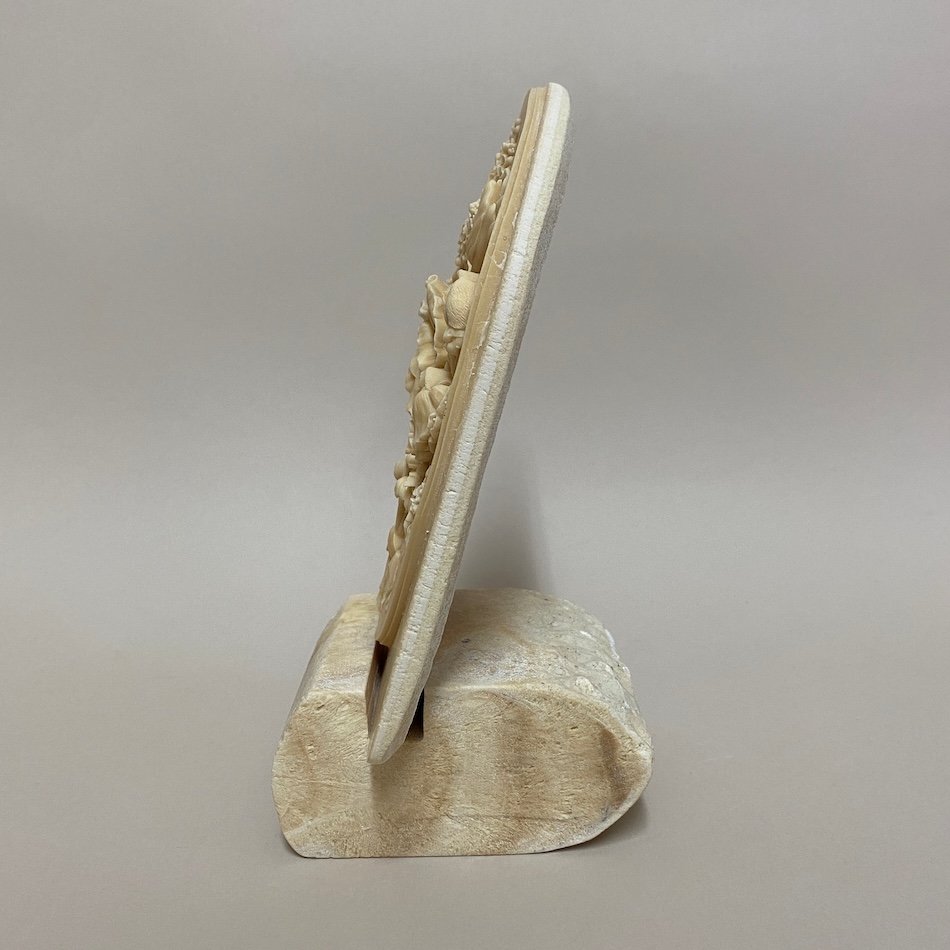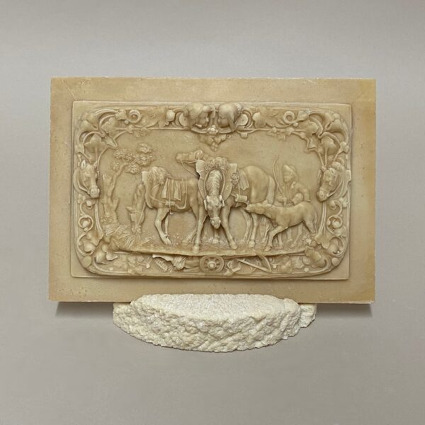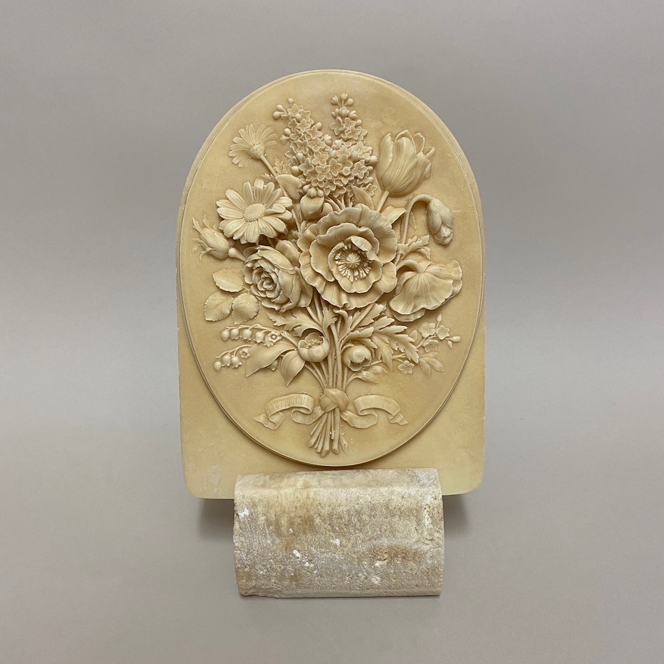 Ce bas-relief en calcaire dévoile un bouquet de fleurs somptueux, sculpté avec une précision remarquable. Chaque pétale, chaque feuille, chaque courbe révèle un niveau de détail digne d’un travail d’orfèvre, résultat d’un savoir-faire rare et entièrement artisanal.