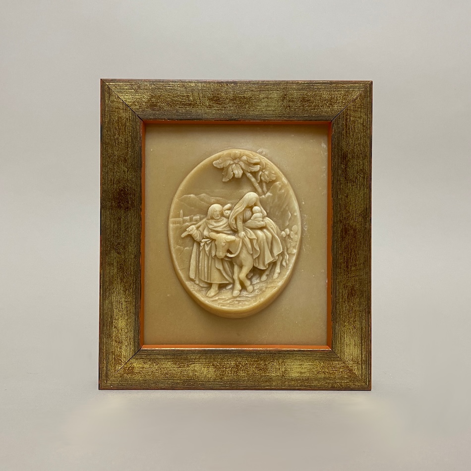 Ce bas-relief fait partie d’un ensemble de thèmes d’inspirations chrétiennes, tirés du Nouveau Testament, aux motifs en relief logés dans une mandorle sur fond de paysage oriental.