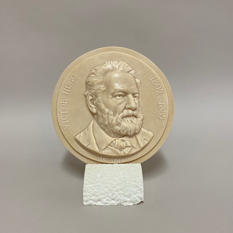 Bas-relief en calcaire représentant Victor Hugo l’écrivain, poète, romancier et personnalité politique et intellectuelle qui a joué un rôle majeur dans l’Histoire du XIXe siècle.